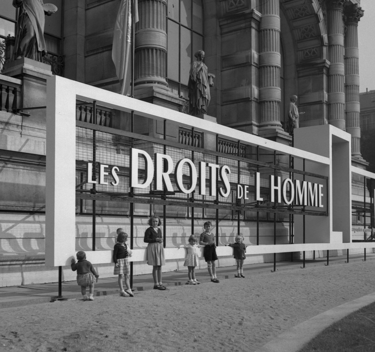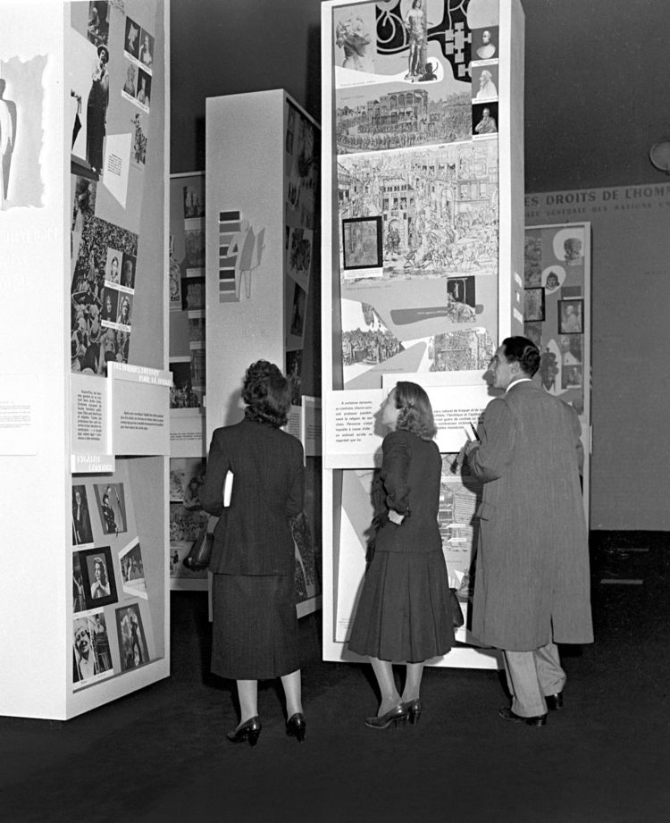 Installations at The Human Rights Exhibition, Musée Galliéra, Paris, 1949.