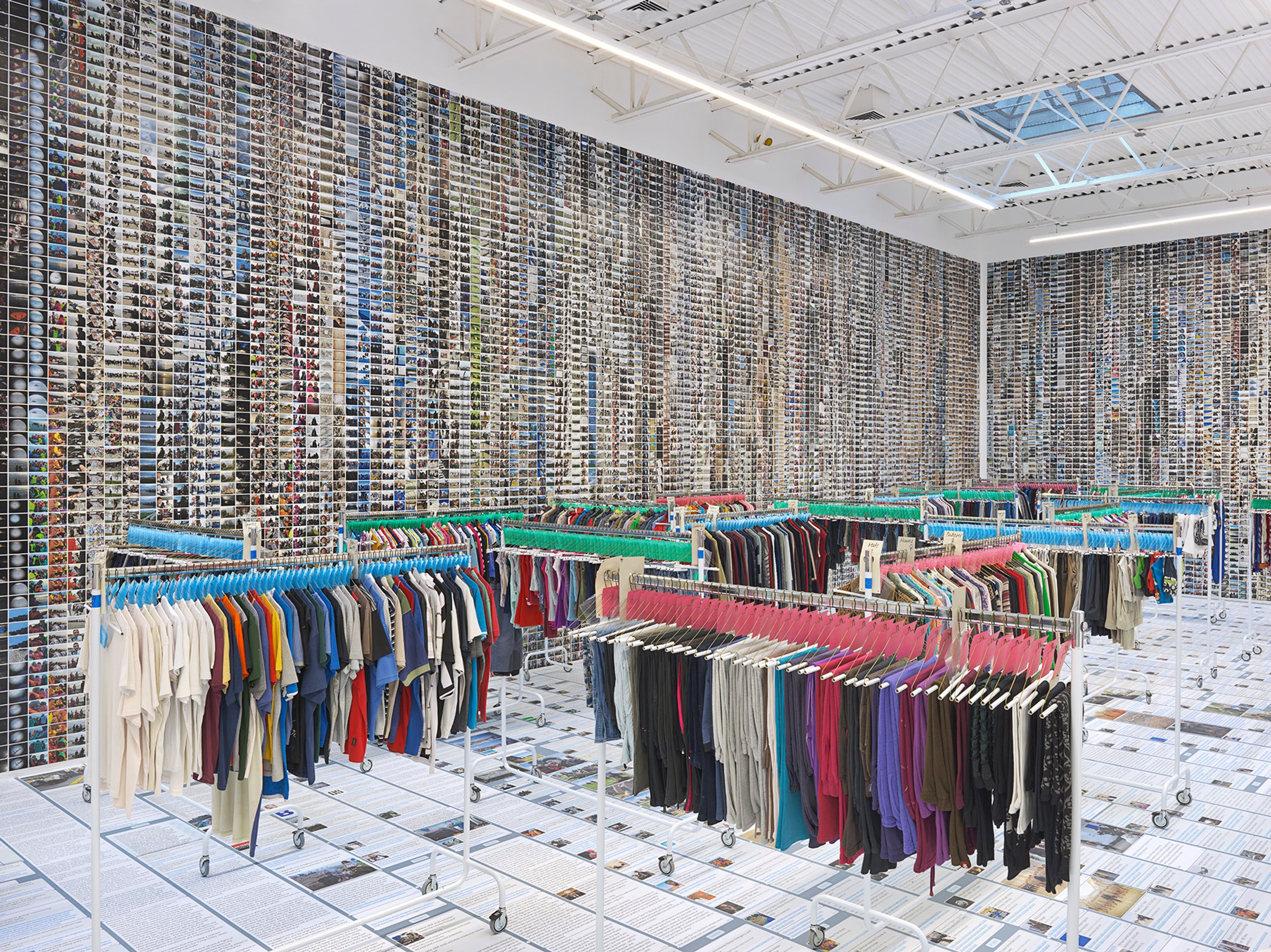 To leave a state, to become a refugee, is to leave behind a life, a home, and an identity. The 2,000 printed media clips and photographs covering the walls and floor of the installation remind us that the world is watching this crisis unfold. But does it see the complete person who once wore these clothes?