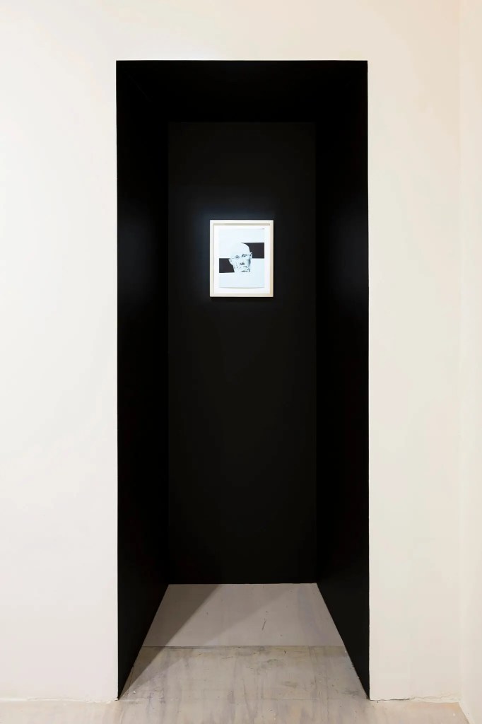 An installation (right) of a self-portrait (above) by Billy Sell (1976-2013), who served a life sentence for attempted murder and spent much of his sentence in isolation. Sell died during a statewide protest against solitary confinement in California prisons.
