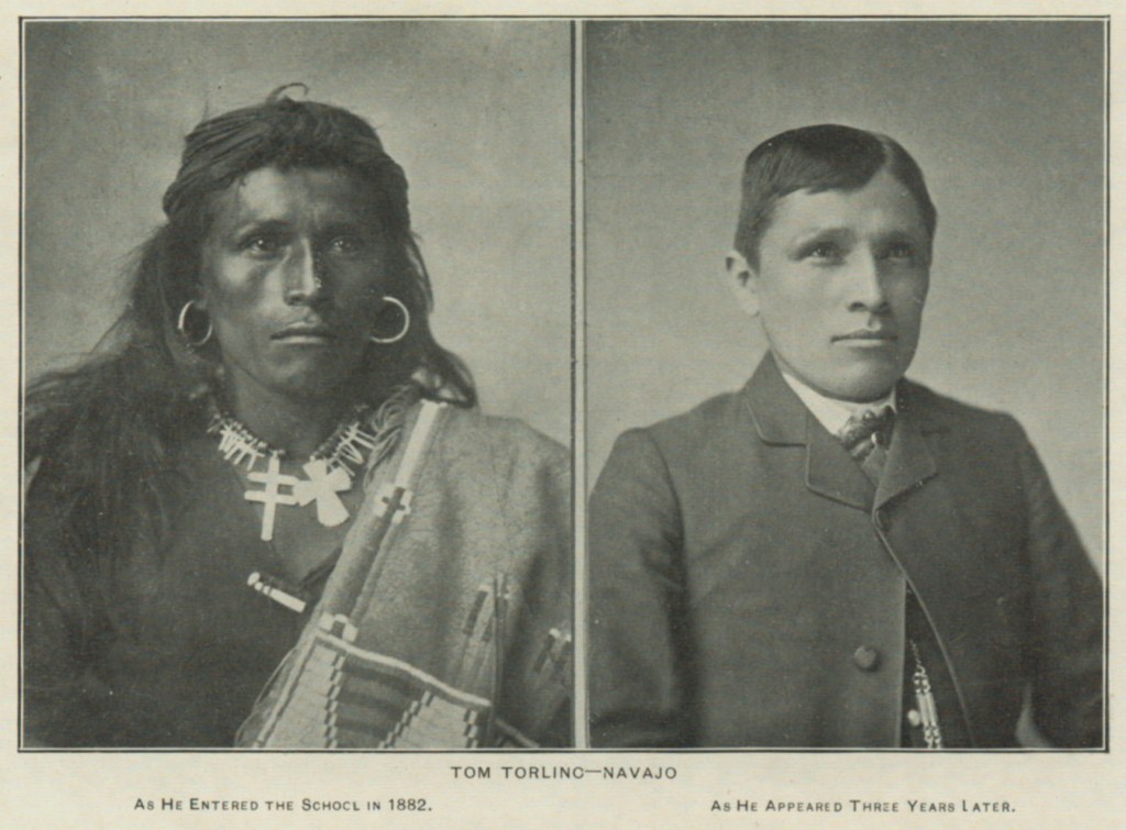 Tom Torlino – Navajo. As He Entered School in 1882 (L). As He Appeared Three Years Later (R).
